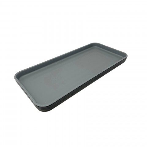 Roca Plate, 13" x 6", rectangular, melamine, gray matte inside/ black matte outside
