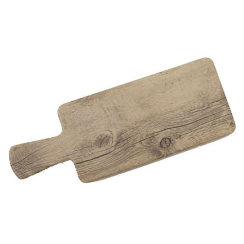 Granville™ Display Board, 11"W x 5-1/2"D x 3/4"H, 14-3/4" O.A.L. with handle, rectangular, with foot, break-resistant, dishwasher safe, BPA free, melamine, faux oak wood