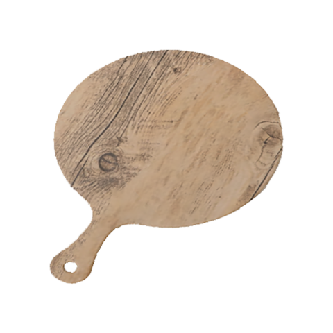 Granville™ Display Board, 7-3/4" dia. x 1/2"H, 10-3/4" O.A.L. with handle, round, with foot, break-resistant, dishwasher safe, BPA free, melamine, faux oak wood