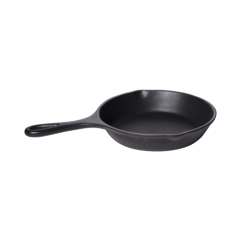 Heiss™ Skillet, 20 oz (25 oz Rim-Full), 7.22" Dia. X 1.26" H (Serving Area, 11.8" L x 7.70" W), round, with handles, aluminum, black cast aluminum