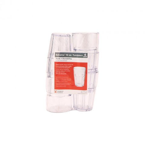 Bahama™ Double Rock Tumbler, 10 oz. (12.4 oz. rim full), 3-1/8" dia. x 4-3/4"H, stacking, BPA free, SAN, clear, NSF (special packaging, set of 6)