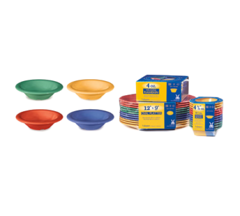 Diamond Mardi Gras™ Bowl, 4-1/2 oz. (5 oz. rim full), 4-3/4" dia. x 1-1/4"H, round, break-resistant, dishwasher safe, BPA free, melamine, mix pack of 4 Mardi Gras™ colors (tropical yellow, rio orange, peacock blue & rainforest green), NSF (special packaging)
