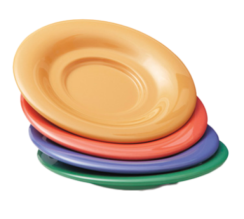 Diamond Mardi Gras™/Bake & Brew™ Saucer, 5-1/2" dia., for C-108, TM-1208 & TM-1308, break-resistant, dishwasher safe, melamine, mix pack of 4 Mardi Gras™ colors (tropical yellow, rio orange, peacock blue & rainforest green), NSF (to be discontinued, contact factory for availability)