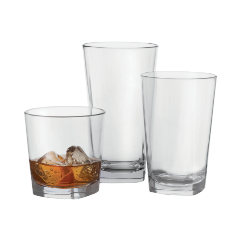 Cubed™ Rocks Glass, 9 oz. (9.7 oz. rim full), 3-1/4" dia. x 3-3/8"H, dishwasher safe, break-resistant, BPA Free, SAN, clear