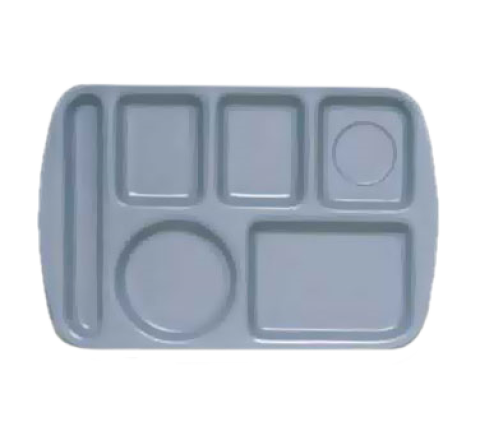 School & Cafeteria Tray, 14-5/8" x 9-3/4", 6 compartments, left-handed, break-resistant, dishwasher safe, French blue, NSF