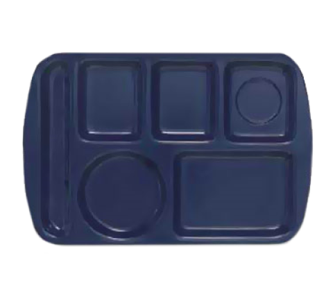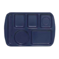 School & Cafeteria Tray, 14-5/8" x 9-3/4", 6 compartments, left-handed, break-resistant, dishwasher safe, navy blue, NSF