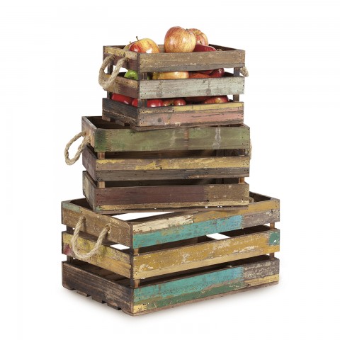 Urban Renewal™ Wood Crate Set, includes: (1) 11-3/4"W x 8-1/4"D x 7-1/2"H crate, (1) 15-1/4"W x 10-1/2"D x 8-1/4"H crate, & (1) 15-1/4"W x 12-3/4"D x 9"H crate, rectangular, with rope handles, reclaimed wood