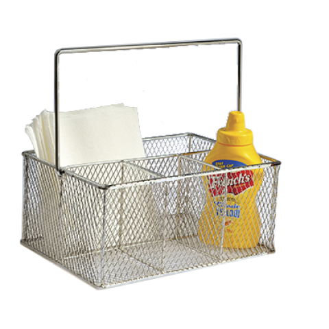 Clipper Mill Condiment/Flatware Holder, 9-3/8" x 6-7/8" x 4-1/2"H, 4-compartments, wire, chrome plated