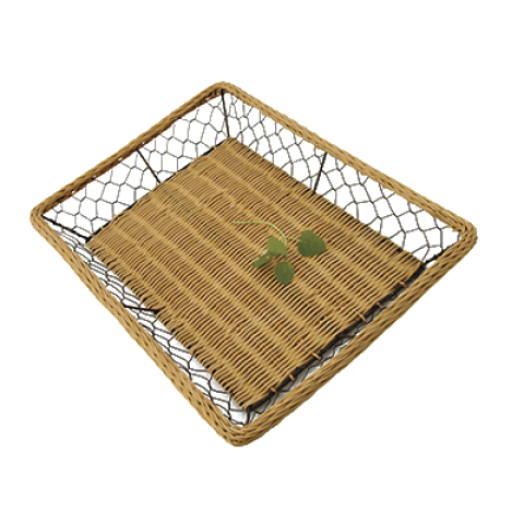 Display Basket, 16-1/2" x 11-3/4" x 2-1/2"H, rattan and wire, powder covered iron, black (to be discontinued, contact factory for availability)