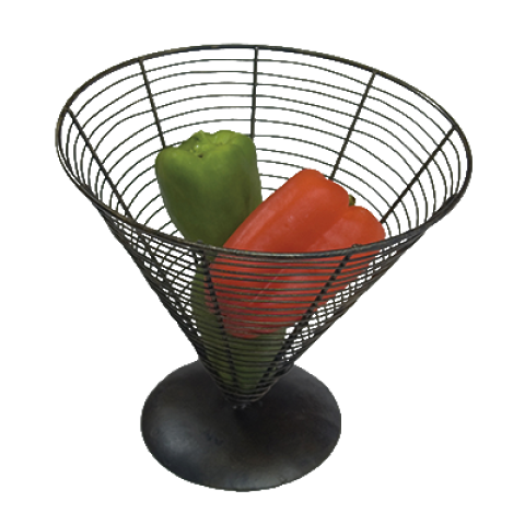 Clipper Mill Display Basket, 9-1/2" dia. x 9-1/4"H, cone, screw on base, wire, powder coated iron, black