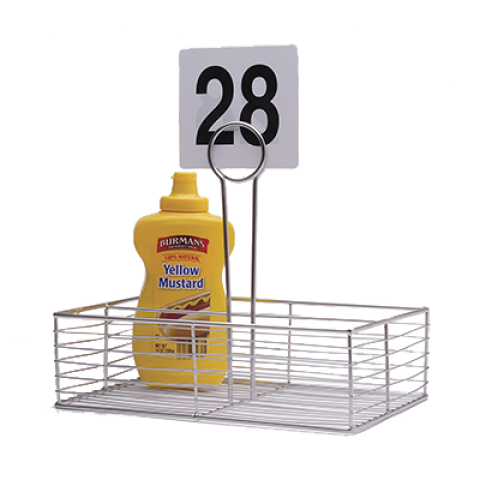 Clipper Mill Display Basket, 10" x 7" x 3"H, rectangular, 2-compartments, with card holder, rust-resistant wire, stainless steel