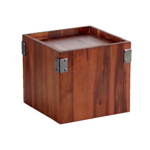 Urban Renewal™ Dispenser Riser, 9-1/2" x 9-1/2" x 8"H, square, for acrylic juice beverage dispenser (DISP-3), with metal brackets, wood, walnut