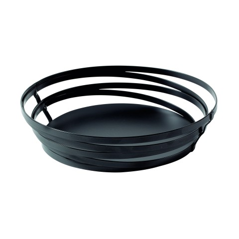Cyclone™ Serving Basket, 9" dia. x 2-1/4", round, powder coated metal wire, solid bottom, metal gray