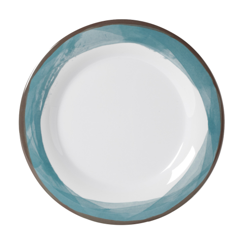 Diamond White™ Plate, 10-1/2" dia., round, wide rim, break-resistant, dishwasher safe, BPA free, melamine, Kanello™ blue, NSF