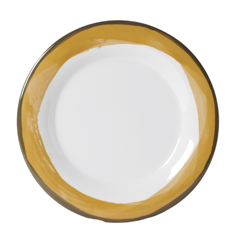 Diamond White™ Plate, 10-1/2" dia., round, wide rim, break-resistant, dishwasher safe, BPA free, melamine, Kanello™ yellow, NSF