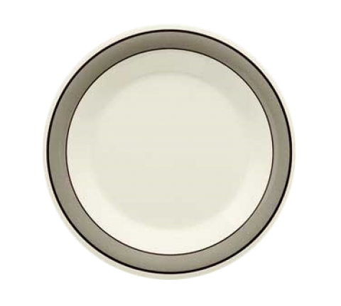 Diamond Cambridge™ Plate, 5-1/2" dia., round, wide rim, break-resistant, dishwasher safe, BPA free, melamine, white with gray rim, NSF