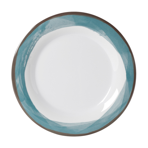 Diamond White™ Plate, 9" dia., round, wide rim, break-resistant, dishwasher safe, BPA free, melamine, Kanello™ blue, NSF (to be discontinued, contact factory for availability)