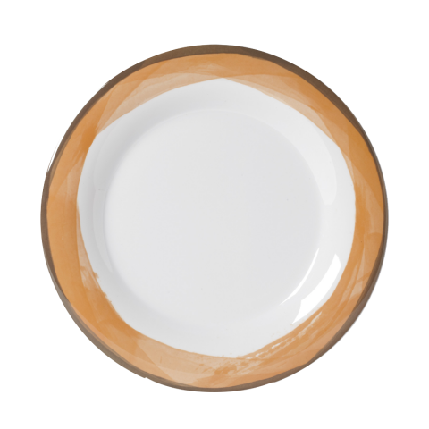 Diamond White™ Plate, 9" dia., round, wide rim, break-resistant, dishwasher safe, BPA free, melamine, Kanello™ orange, NSF