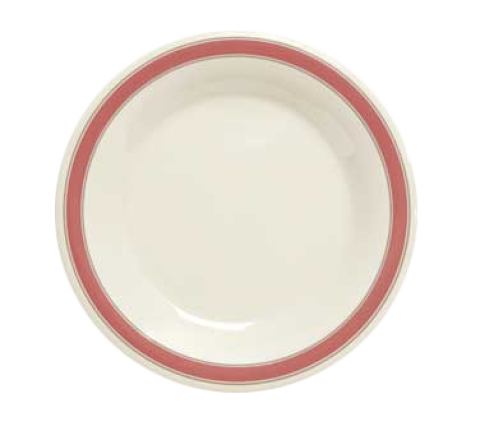 Diamond Oxford™ Plate, 9" dia., round, wide rim, break-resistant, dishwasher safe, BPA free, melamine, white with pink rim, NSF (to be discontinued, contact factory for availability)