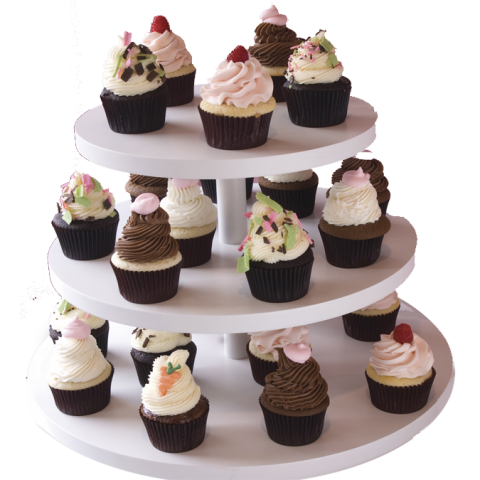 Cupcake Stand, 12-1/4"H, top 12", middle 15", bottom 18", small, 3-tier, white MDF wood/laminate