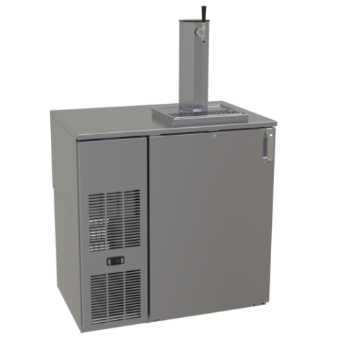 Draft Dispensing Cooler, one zone, front serviced, bar profile, 36"W, one-section, 20"W door opening, self-contained refrigeration, bright white LED interior lighting, front venting, stainless steel interior with keg rack, 1" stainless steel finished top, galvanized steel back, R290 Hydrocarbon refrigerant, 1/6 HP, NSF Standard 7 for open food storage, cETLus, ETL-Sanitation, ETL Verified