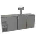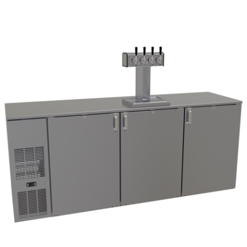 Draft Dispensing Cooler, one zone, front serviced, bar profile, 84"W, three-section, 20"W door opening, self-contained refrigeration, bright white LED interior lighting, front venting, stainless steel interior with keg racks, 1" stainless steel finished top, galvanized steel back, R290 Hydrocarbon refrigerant, 1/4 HP, NSF Standard 7 for open food storage, cETLus, ETL-Sanitation, ETL Verified