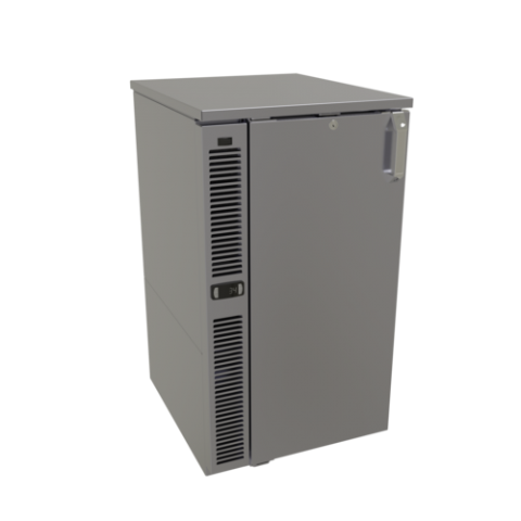 Cooler, one zone, side serviced, bar profile, 20"W, one-section, 12"W door opening, self-contained refrigeration, LED interior lighting, front venting, stainless steel interior, R290 Hydrocarbon refrigerant, 1/8 HP, NSF Standard 7 for open food storage, cETLus, ETL-Sanitation, ETL Verified (NOTE: Made to order, not returnable)