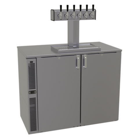 Draft Dispensing Cooler, one zone, side serviced, bar profile, 36"W, two-section, 12"W door opening, self-contained refrigeration, bright white LED interior lighting, front venting, stainless steel interior with keg racks, 1" stainless steel finished top, galvanized steel back, R290 Hydrocarbon refrigerant, 1/8 HP, NSF Standard 7 for open food storage, cETLus, ETL-Sanitation, ETL Verified (NOTE: Made to order, not returnable)