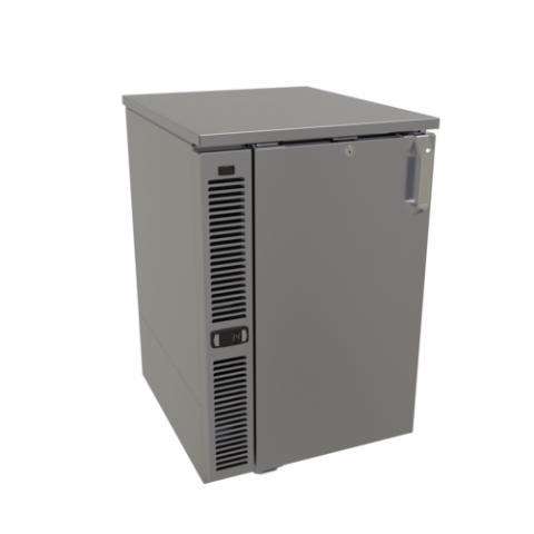 Cooler, one zone, side serviced, low profile, 20"W, one-section, 12"W door opening, self-contained refrigeration, LED interior lighting, front venting, stainless steel interior, (2) adjustable shelves per door, R290 Hydrocarbon refrigerant, 1/8 HP, NSF Standard 7 for open food storage, cETLus, ETL-Sanitation, ETL Verified (NOTE: Made to order, not returnable)