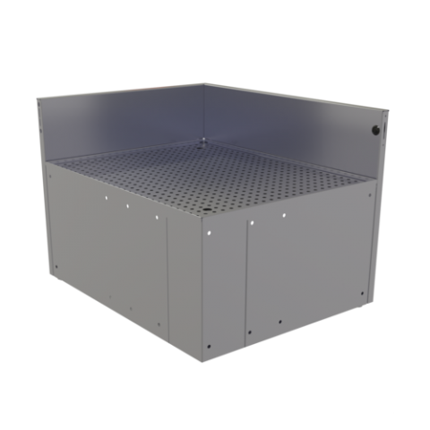 Underbar Inside Rectangle Corner Drainboard, with removable perforated insert, 90° angle, 24" deep, 30" left & 24" right, with backsplash, stainless steel construction, no legs (mounts between two adjacent underbar pieces), ETL-Sanitation