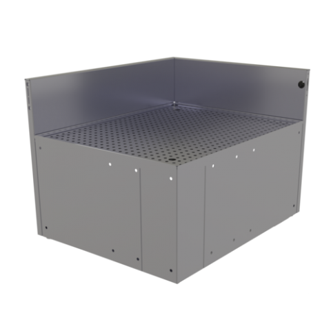 Underbar Inside Rectangle Corner Drainboard, with removable perforated insert, 90° angle, 24" deep, 24" left & 30" right, with backsplash, stainless steel construction, no legs (mounts between two adjacent underbar pieces), ETL-Sanitation