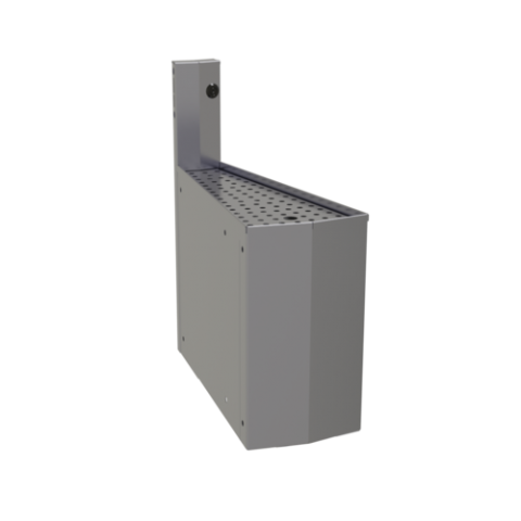 Underbar Outside Wedge Corner Drainboard, with removable perforated insert, 15° angle, 19" deep, with backsplash, stainless steel construction, no legs (mounts between two adjacent underbar pieces), ETL-Sanitation (NOTE: Made to order, not returnable)