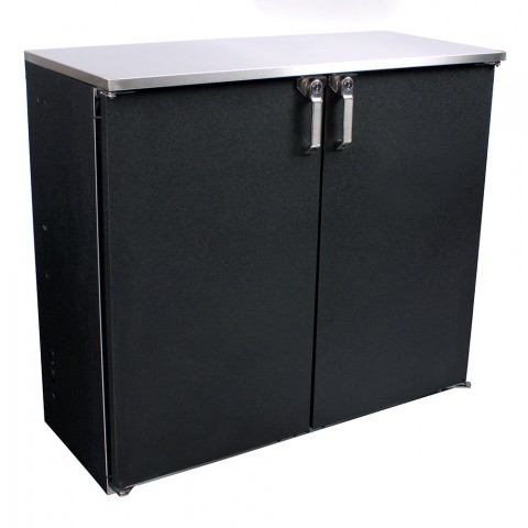 Cooler, shallow depth, one zone, designed for remote refrigeration, bar profile, 60"W, three-section, 16"W door opening, LED interior lighting, stainless steel interior & exterior sub-top, (2) adjustable shelves per door, NSF Standard 7 for open food storage, cETLus, ETL-Sanitation (NOTE: Made to order, not returnable)