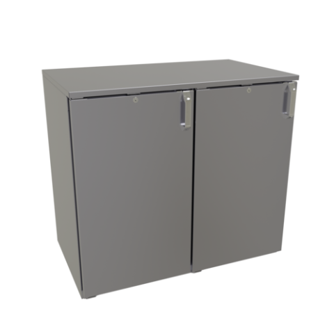 Back Bar Dry Storage Cabinet, two-section, 40"W, non-refrigerated, (2) solid hinged doors, (2) adjustable shelves per section, galvanized steel interior, galvanized steel back, stainless steel bullet feet, ETL-Sanitation (NOTE: Made to order, not returnable)