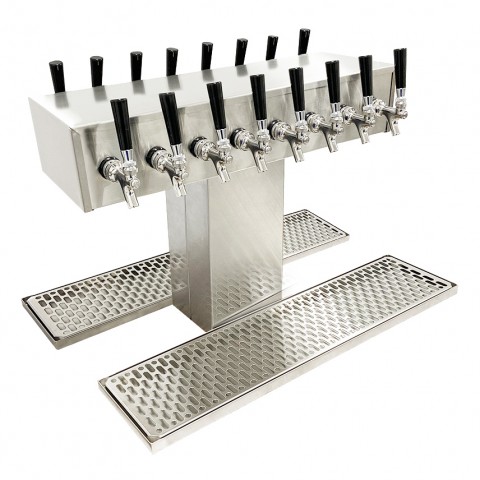 Double-Sided Draft Dispensing Tower, countertop, (16) stainless steel faucets (handles not included), glycol-cooled, (1) 6-3/4" W insulated column, insulated cold plate assembly, (2) surface mount drain pans with removable inserts, all stainless steel construction, mirror finish (NOTE: Made to order, not returnable)