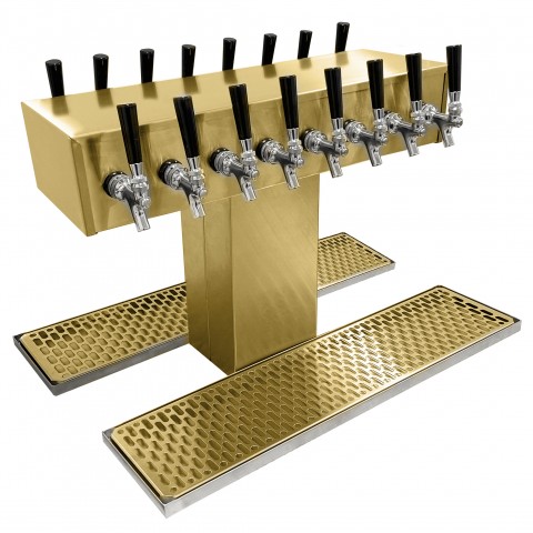Double-Sided Draft Dispensing Tower, countertop, (16) stainless steel faucets (handles not included), glycol-cooled, (1) 6-3/4" W insulated column, insulated cold plate assembly, (2) mirror finish surface mount drain pans with brass finish removable inserts, all stainless steel construction, polished brass finish (NOTE: Made to order, not returnable)