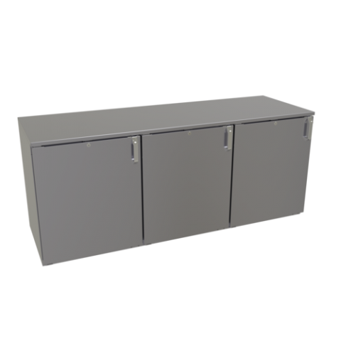 Low Profile Back Bar Dry Storage Cabinet, three-section, 72"W, non-refrigerated, (3) solid hinged doors, (1) adjustable shelf per section, galvanized steel interior, galvanized steel back, stainless steel bullet feet, ETL-Sanitation (NOTE: Made to order, not returnable)