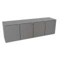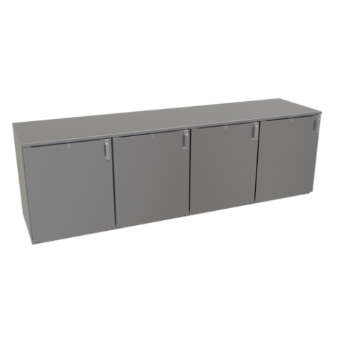Low Profile Back Bar Dry Storage Cabinet, four-section, 96"W, non-refrigerated, (4) solid hinged doors, (1) adjustable shelf per section, galvanized steel interior, galvanized steel back, stainless steel bullet feet, ETL-Sanitation (NOTE: Made to order, not returnable)
