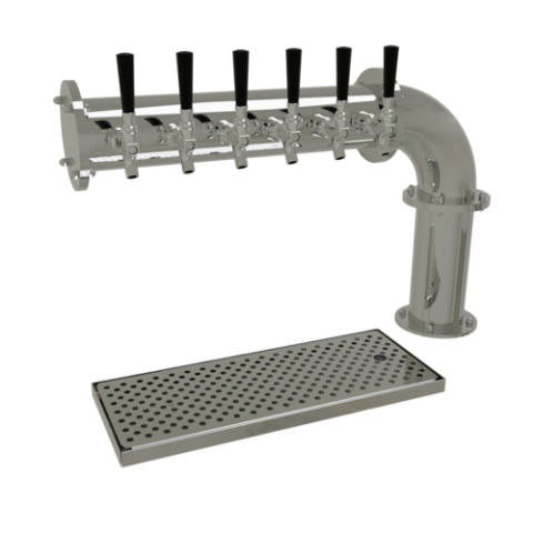 Pipe Cantilever Draft Dispensing Tower, countertop, (6) stainless steel faucets (handles not included), air-cooled, (1) 4" column, surface mount drain pan with removable perforated insert, all stainless steel construction, mirror finish (NOTE: Made to order, not returnable)"