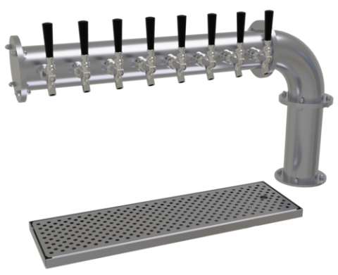 Pipe Cantilever Draft Dispensing Tower, countertop, (8) stainless steel faucets (handles not included), glycol-cooled, (1) 4" column, insulated cold plate assembly, surface mount drain pan with removable perforated insert, all stainless steel construction, stainless steel finish (NOTE: Made to order, not returnable)"