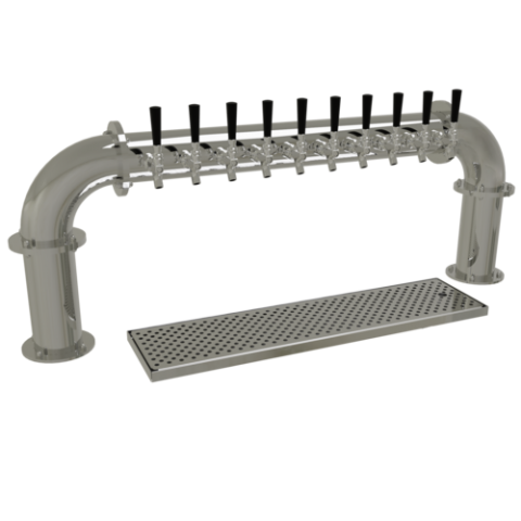 Pipe Pass-Thru Draft Dispensing Tower, countertop, (10) stainless steel faucets (handles not included), air-cooled, (2) 4" columns, surface mount drain pan with removable perforated insert, all stainless steel construction, mirror finish (NOTE: Made to order, not returnable)"