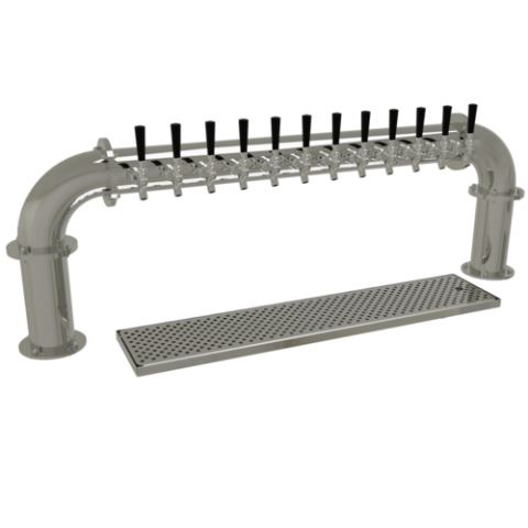 Pipe Pass-Thru Draft Dispensing Tower, countertop, (12) stainless steel faucets (handles not included), glycol-cooled, (2) 4" columns, insulated cold plate assembly, surface mount drain pan with removable perforated insert, all stainless steel construction, mirror finish (NOTE: Made to order, not returnable)"