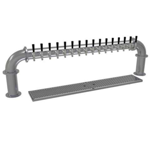 Pipe Pass-Thru Draft Dispensing Tower, countertop, (16) stainless steel faucets (handles not included), glycol-cooled, (2) 4" columns, insulated cold plate assembly, surface mount drain pan with removable perforated inserts, all stainless steel construction, stainless steel finish (NOTE: Made to order, not returnable)"