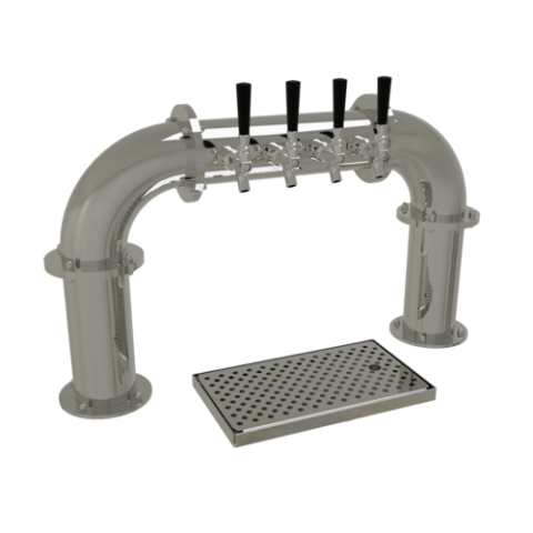 Pipe Pass-Thru Draft Dispensing Tower, countertop, (4) stainless steel faucets (handles not included), air-cooled, (2) 4" columns, surface mount drain pan with removable perforated insert, all stainless steel construction, mirror finish (NOTE: Made to order, not returnable)"