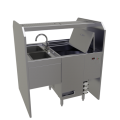 Disassembly Style Pass-Thru Cocktail Station, with glasswasher, 42"W x 32"D, rightward workflow, GW24 automatic rotary glass washer with bifold cover, (2) wet waste sinks with (1) gooseneck faucet (low lead compliant) & strainers, dry waste receptacle, 12"D stainless steel draining tray shelf with removable perforated inserts, ETL-Sanitation (1 year parts & labor warranty on glasswasher, standard) (NOTE: Made to order, not returnable)