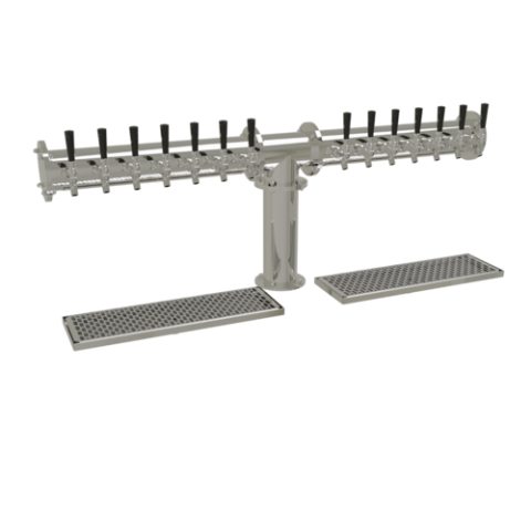 Pipe Tee Draft Dispensing Tower, countertop, (14) stainless steel faucets (handles not included), air-cooled, (1) 4" column, surface mount drain pans with removable perforated insert, all stainless steel construction, mirror finish (NOTE: Made to order, not returnable)"