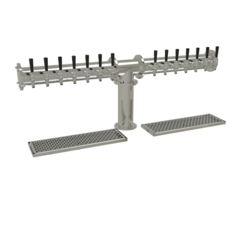 Pipe Tee Draft Dispensing Tower, countertop, (14) stainless steel faucets (handles not included), glycol-cooled, (1) 4" column, insulated cold plate assembly, surface mount drain pans with removable perforated insert, all stainless steel construction, mirror finish (NOTE: Made to order, not returnable)"