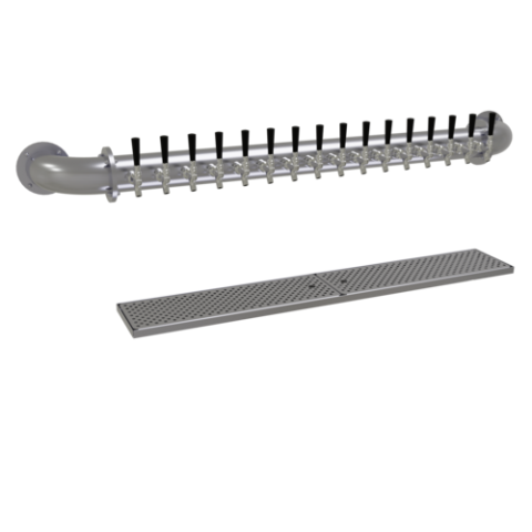 Pipe Wall Draft Dispensing Tower, wall mount, (16) stainless steel faucets (handles not included), glycol-cooled, insulated cold plate assembly, surface mount drain pan with removable perforated inserts, all stainless steel construction, stainless steel finish (NOTE: Made to order, not returnable)"