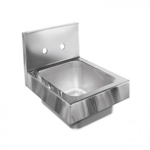 Hand Sink, wall mount, 12"W x 15"D OA, 9-1/4" wide x 11-1/2" front-to-back x 6" deep bowl, 4" OC splash mount faucet holes (faucet not included), includes mounting bracket & 1-1/2" I.P.S. drain fitting, stainless steel construction, ETL-Sanitation (NOTE: Made to order, not returnable)