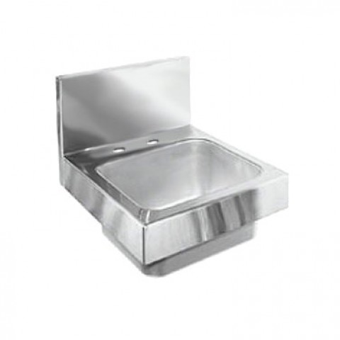 Hand Sink, wall mount, 14"W x 15"D OA, 9-1/4" wide x 11-1/2" front-to-back x 6" deep bowl, 4" OC deck mount faucet holes (faucet not included), includes mounting bracket & 1-1/2" I.P.S. drain fitting, stainless steel construction, ETL-Sanitation (NOTE: Made to order, not returnable)